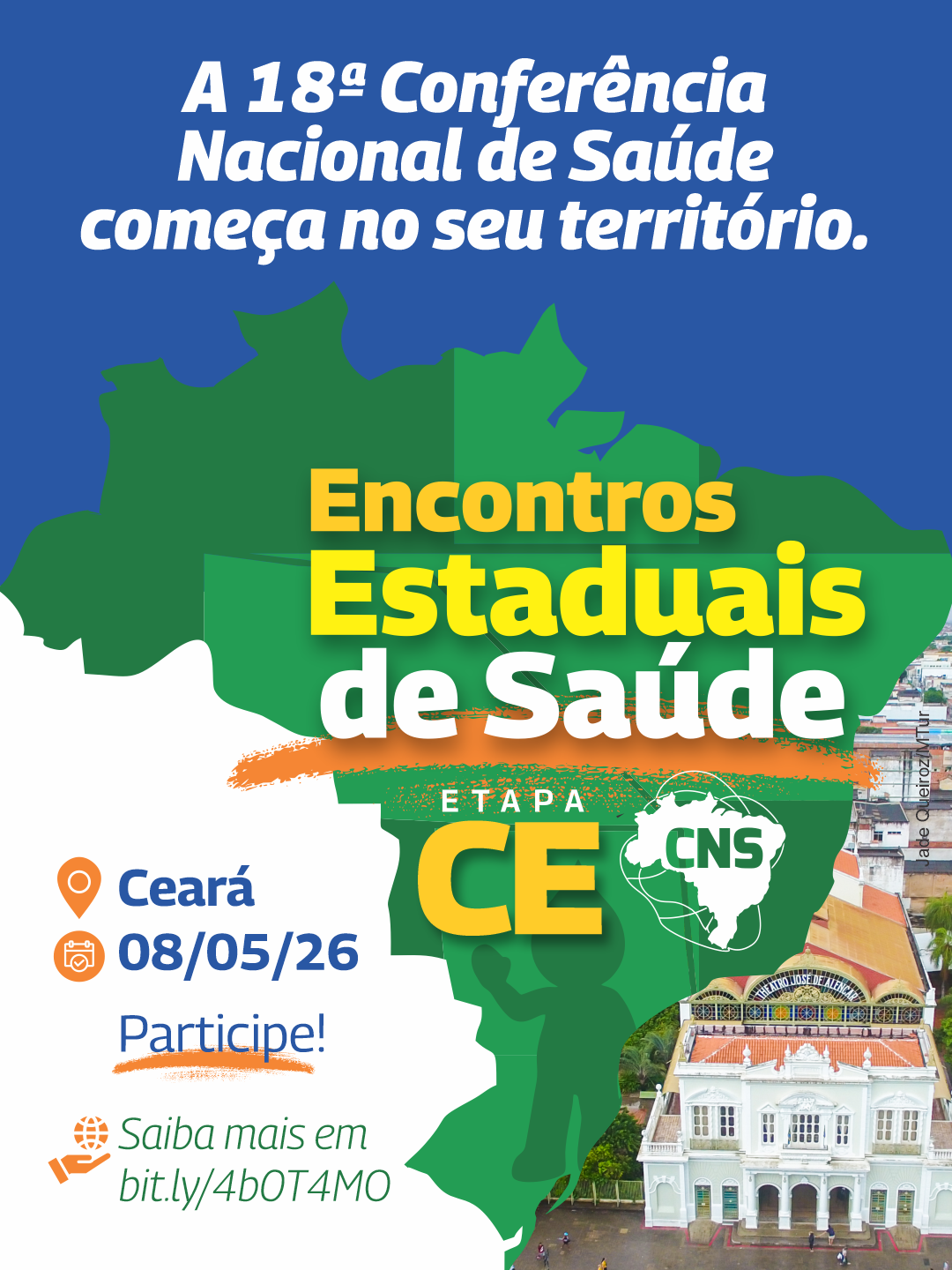 O Ceará recebe, no próximo dia 8 de maio, o Encontro Estadual de Saúde. Promovido pelo Conselho Nacional de Saúde (CNS), em parceria com o Ministério da Saúde (MS) e o Conselho Estadual de Saúde do Ceará (Cesau/CE), o evento será realizado na Escola de Saúde Pública do Ceará.